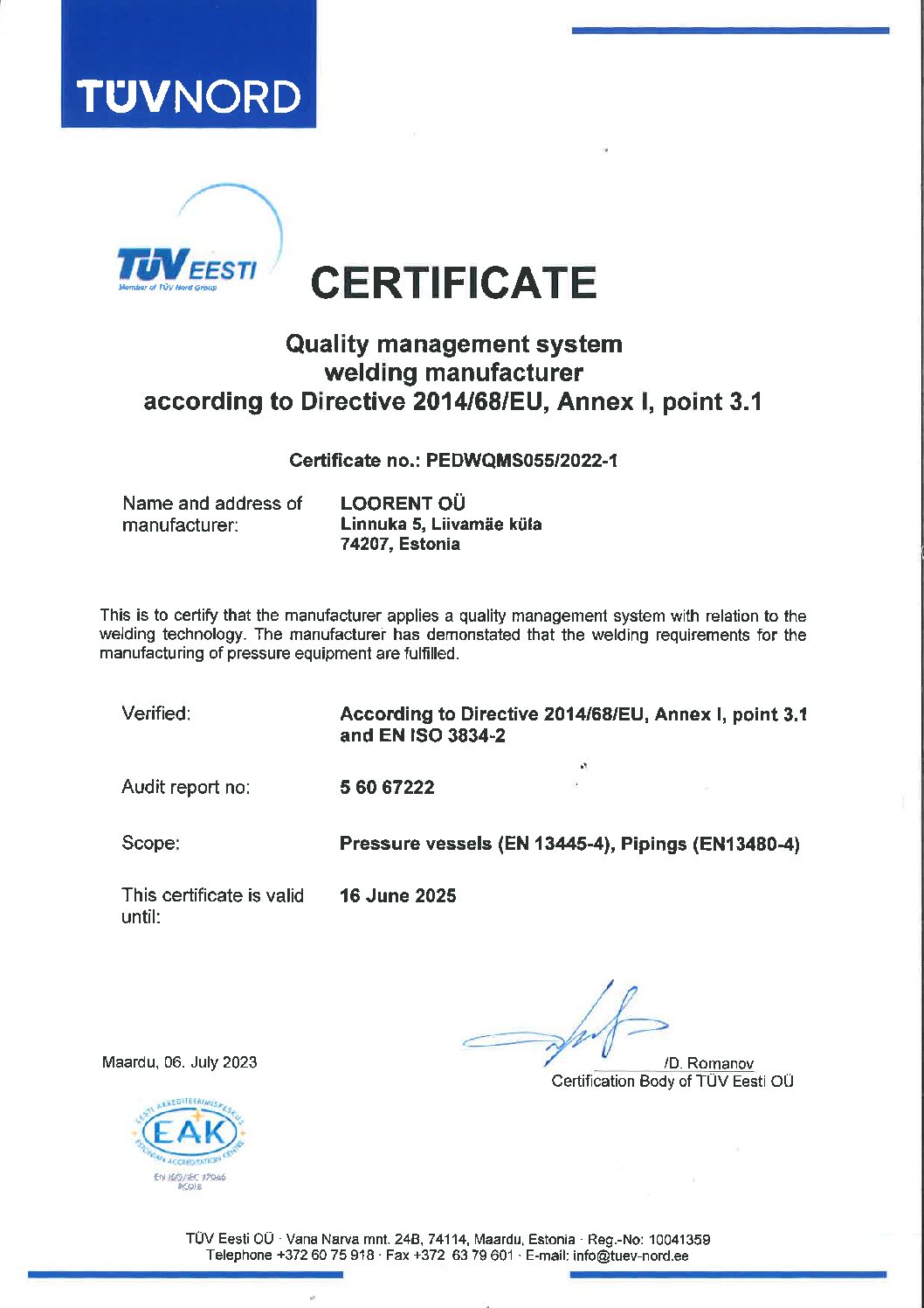 We have acquired a number of certificates to support the goals set and ensure high-quality production worldwide.