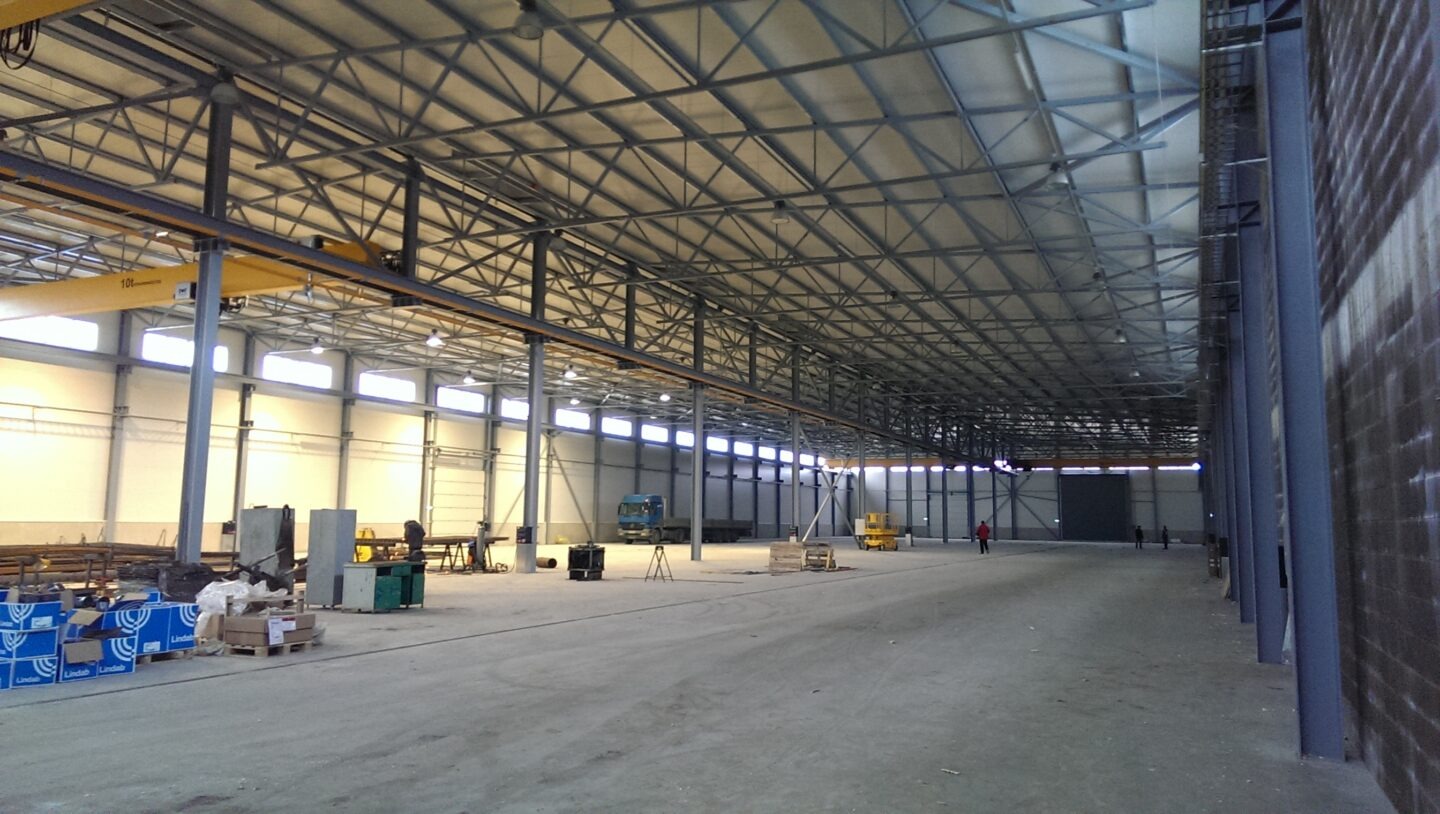 This project was created for our own usage. It is one of the first construction references in the Levstal portfolio. For that, we manufactured beams, trusses, connections, load-bearing structures. We made the installation of the whole building.