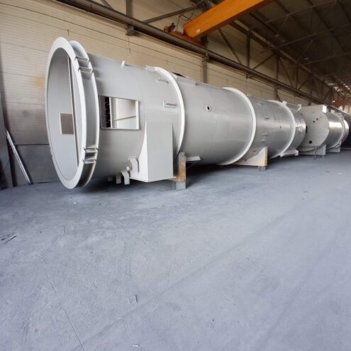 A German gas processing company commissioned Levstal to manufacture a durable steel structure for a circular reformer furnace. The project encompassed the furnace itself, penthouse, platform, staircase system, counterweights, and grating. The structure’s total height reached 13 meters, with an additional 5 meters for the penthouse.